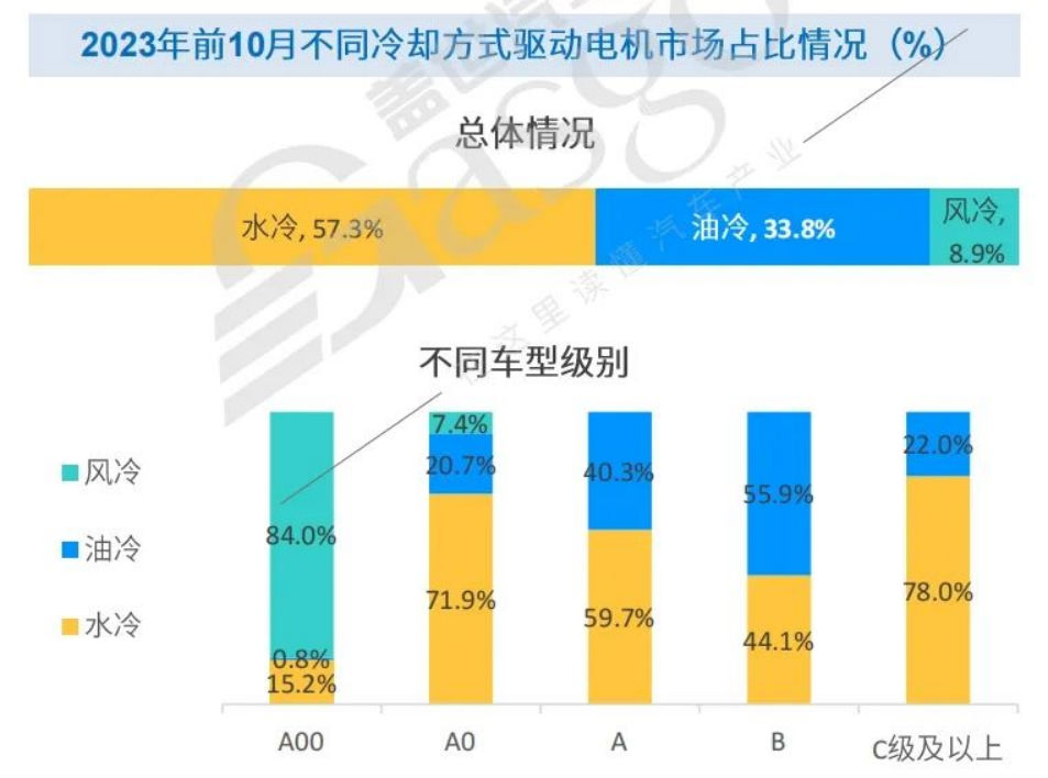 蓋世汽車研究院高級(jí)分析師在大會(huì)上針對電驅(qū)動(dòng)產(chǎn)業(yè)趨勢及新技術(shù)進(jìn)行了詳盡分析,指出,隨著新能源汽車在更廣泛的應(yīng)用場景中滲透,對于驅(qū)動(dòng)電機(jī)的峰值功率、運(yùn)行效率、響應(yīng)速度和振動(dòng)噪音等多項(xiàng)性能提出了更高的要求,“新一代電驅(qū)動(dòng)系統(tǒng)基本上已切換至油冷電機(jī)方案,相較水冷,油冷因具備絕緣性好、冷卻效果佳等特點(diǎn),能夠兼顧低速大轉(zhuǎn)矩下的定子繞組溫升和高速大功率下的磁鋼溫升,可改善電機(jī)效率。”據(jù)蓋世汽車研究院數(shù)據(jù),截止今年10月,乘用車領(lǐng)域,油冷電機(jī)市場占有率已達(dá)33.8%,而B級(jí)車油冷電機(jī)應(yīng)用已達(dá)到55.9%。同時(shí),在商用車領(lǐng)域,低速重載、倒車等工況中傳動(dòng)機(jī)構(gòu)齒輪攪油潤滑冷卻效率低導(dǎo)致動(dòng)力傳動(dòng)系統(tǒng)失效風(fēng)險(xiǎn)的凸顯,也進(jìn)一步強(qiáng)化了電子油泵在新能源商用車中的重要作用和關(guān)鍵零部件地位。