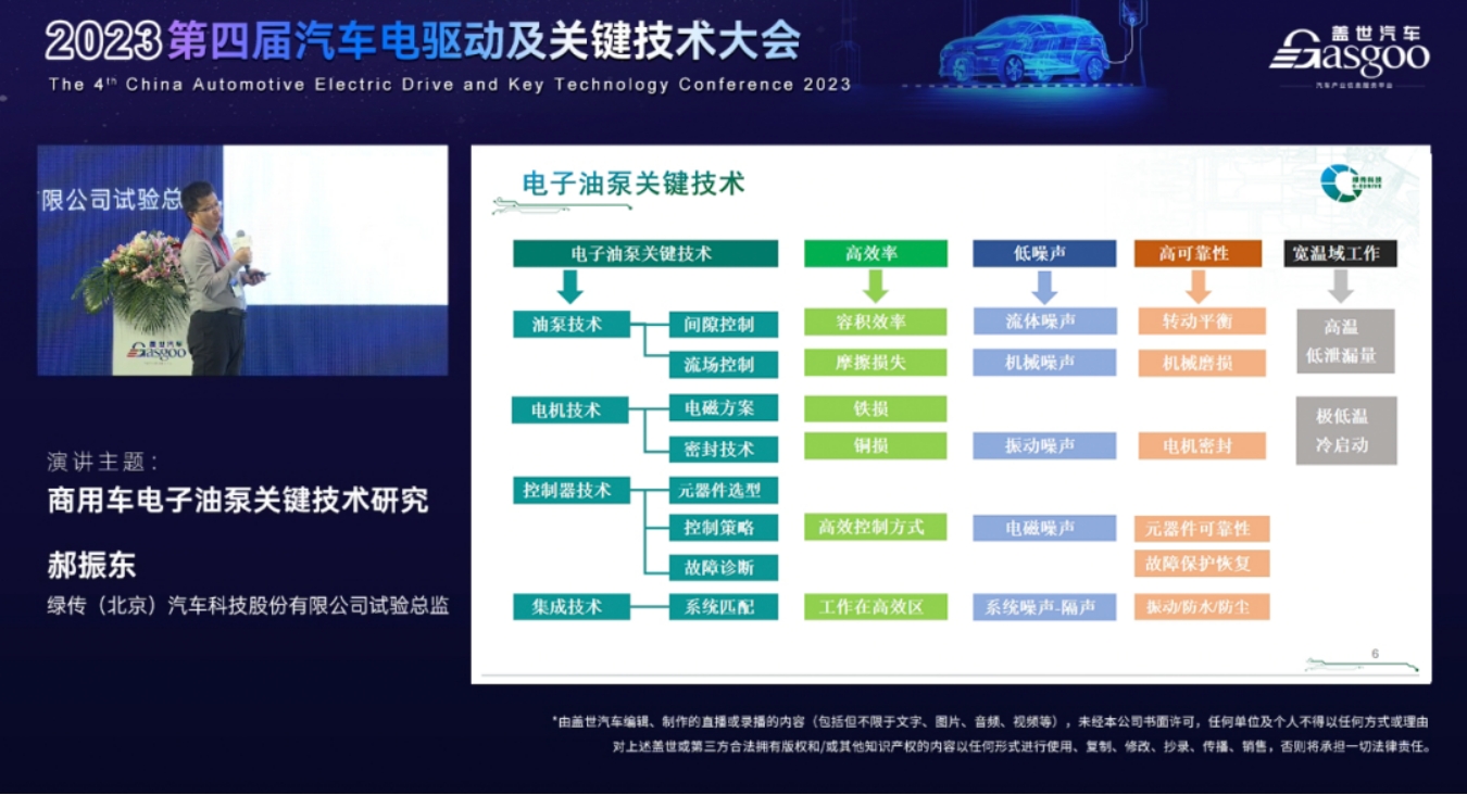2023汽車電驅(qū)動(dòng)及關(guān)鍵技術(shù)大會(huì) 綠傳科技分享電子油泵關(guān)鍵技術(shù)方案